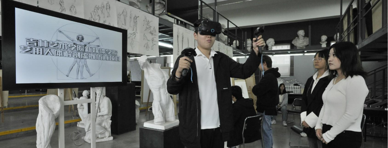 《艺用人体解剖虚拟仿真实验》是新媒体学院2019年获批的国家级虚拟仿真实验教学项目。人体解剖是数字媒体艺术专业数字交互、娱乐、空间、动画等方向,针对人进行体感、体验、人机交互、肢体穿戴设备反馈等命题设计的重要知识支撑。《虚拟仿真实验》利用VR技术展示人体造型,融入人体比例与年龄阶段变化的关联;强调骨骼、肌肉运动如何构成人体美的艺术规律;将人体概括为“体块”,学生操作虚拟人体观察“体块”伸拉、扭曲、穿插演示运动;创设虚拟灯光强化静态和动态骨骼、肌肉群联动,配合不同教学方法,可扩展运用到人物动作捕捉、体感程序设计、虚拟场景合成等多个科技服务于人的数字艺术应用领域。
